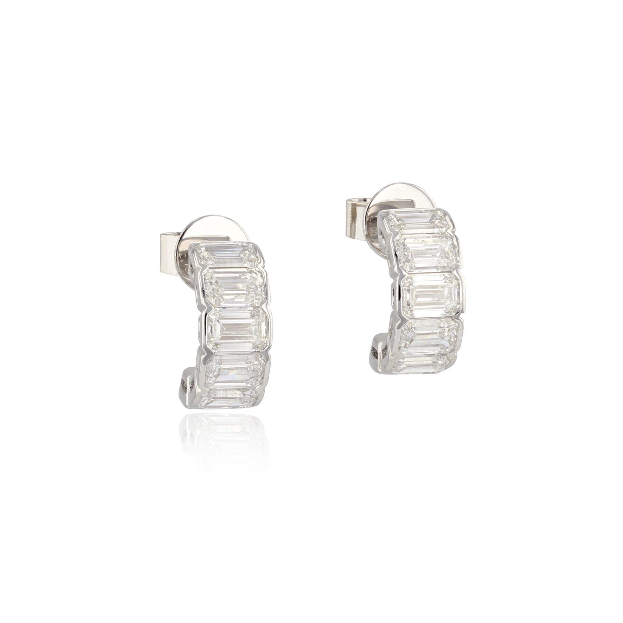 Crafted from 18k white gold, these earrings feature a unique setting designed specifically for each GIA certified and hand-selected emerald cut diamond. This design not only ensures that the diamonds remain securely in place, but also allows for the least amount of metal possible, allowing the diamonds to shine even brighter.