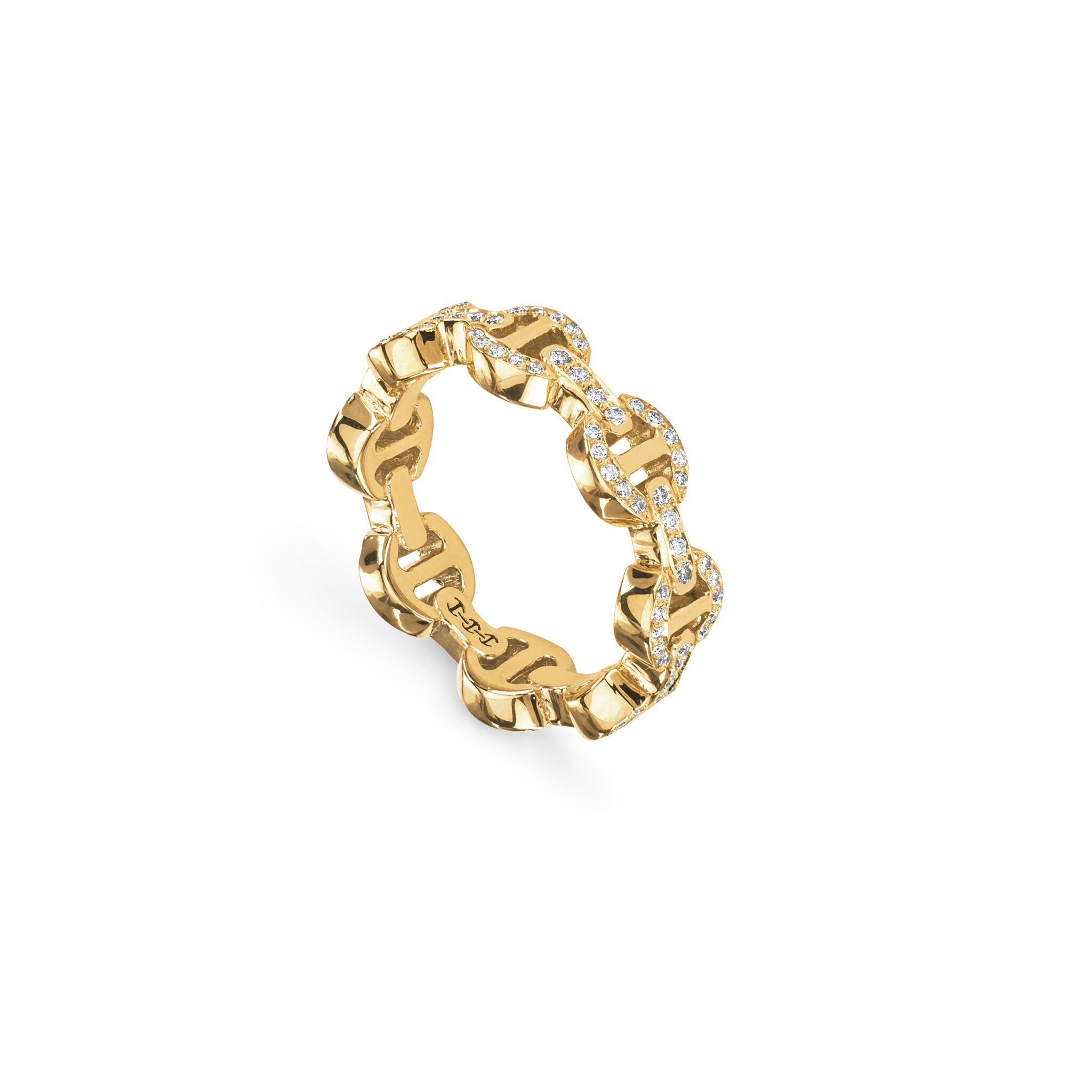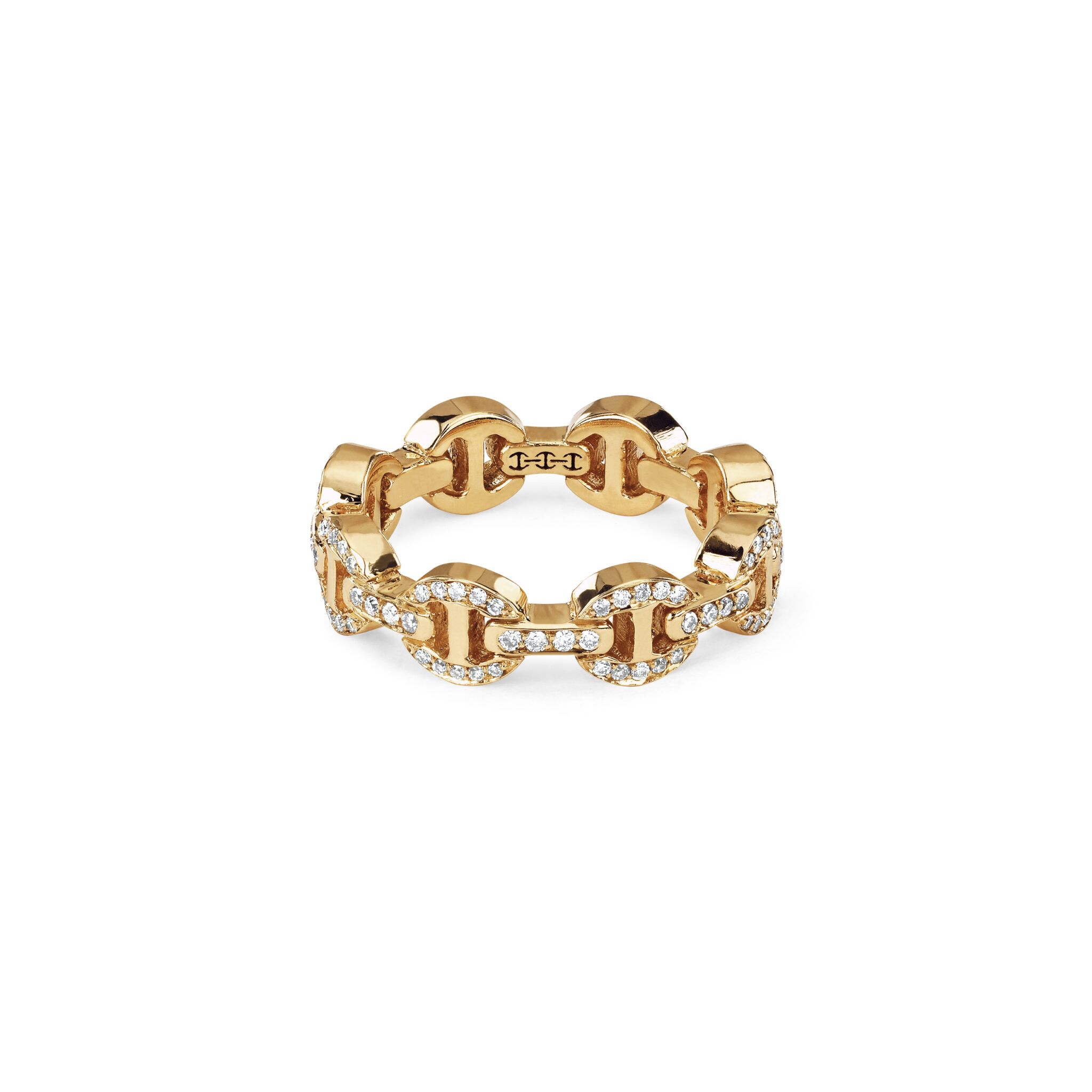 Home Meridian Jewelers Shop Hoorsenbuhs 18K Yellow Gold Dame Tri Link Antiquated Diamond Ring