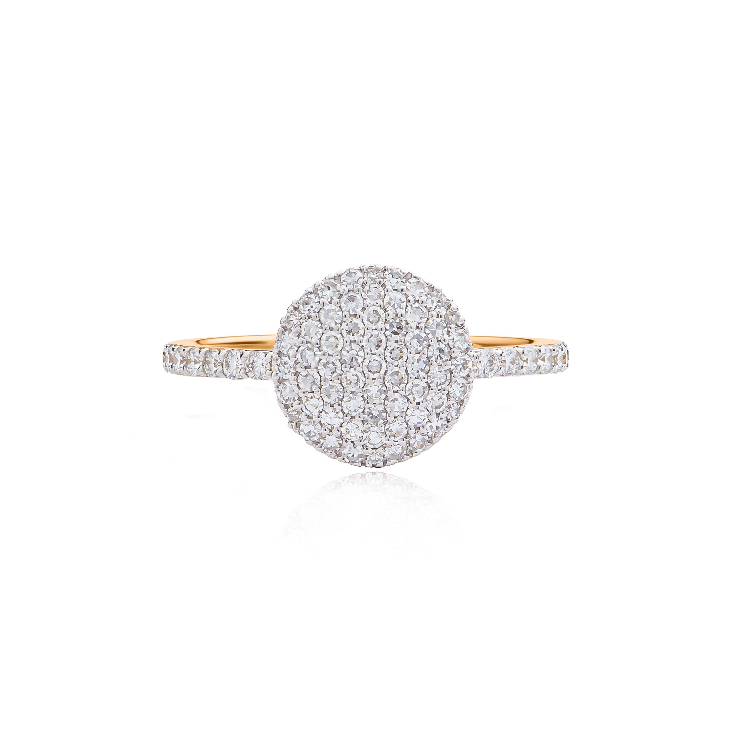 Our signature infinity disc in the perfect ring, the disc has a unique curvature ensuring it will capture light from all angles and project infinite sparkle in the perfect stands out as the perfect accessory. Why infinity? Well, it’s edgeless like an infinity pool and we like to say it has infinite sparkle. Details: - 14k gold and diamonds (0.54 tcw) - Infinity Disc Size: 10 mm in diameter - Available in yellow gold and white gold