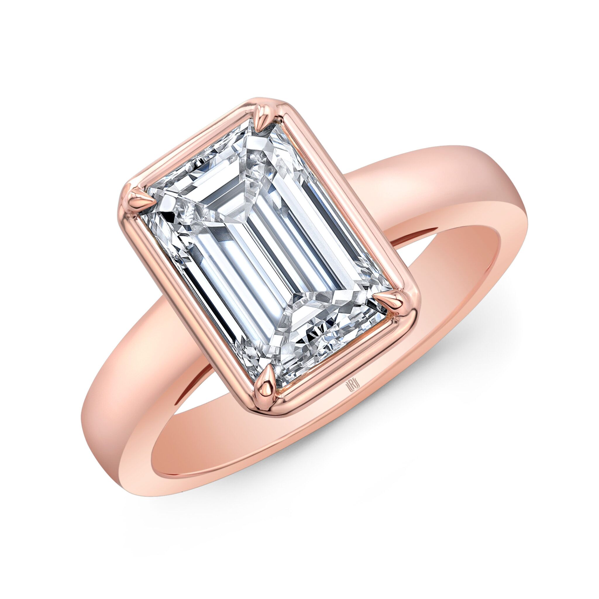 18K Rose Gold Bezel Set Emerald Cut Diamond