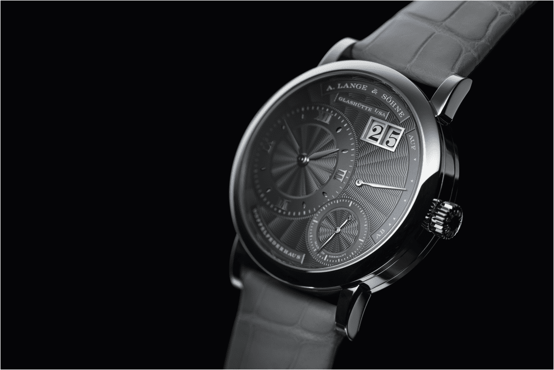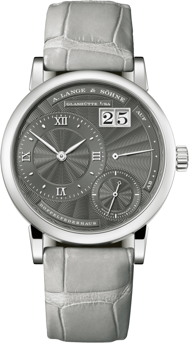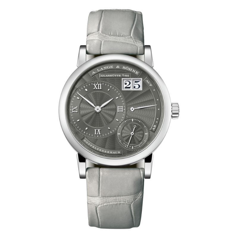 Compact yet striking. Tailored for slender wrists, the LITTLE LANGE 1 embodies all the strengths of the iconic LANGE 1 in terms of both technology and design. The white gold model showcases a grey, guilloche dial crafted from gold.