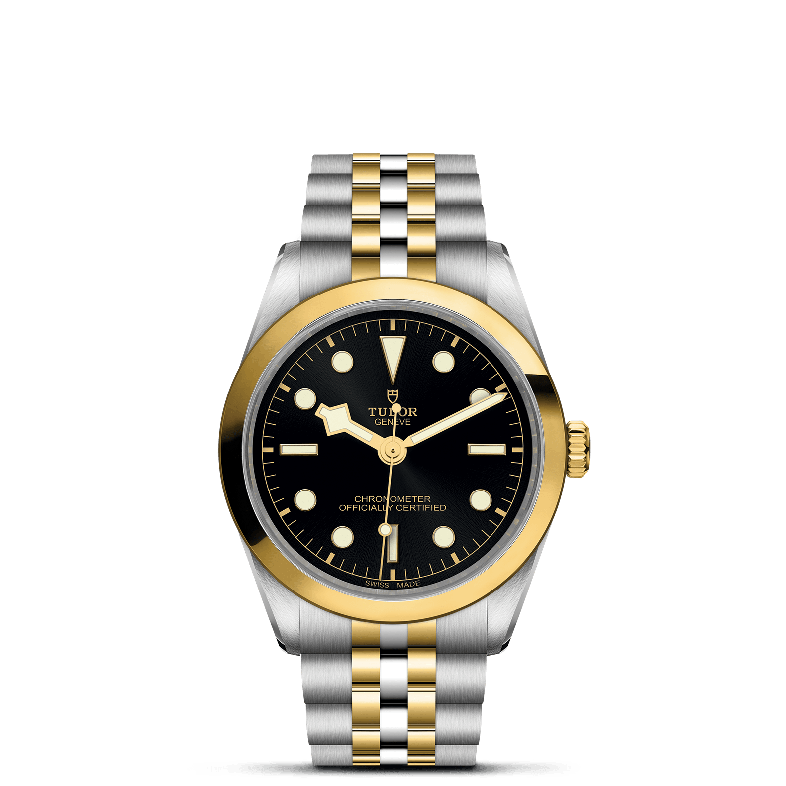 Bezel: Fixed bezel in steel covered by a 0.3mm 18 ct yellow gold cap, Bracelet: Yellow gold center links at 6 and 12 o’clock, Dial: Black, Manufacture Calibre MT5400 (COSC), Winding Crown: Screw-down winding crown with the TUDOR rose in relief. Steel covered by a 0.1mm 18 ct yellow gold cap-