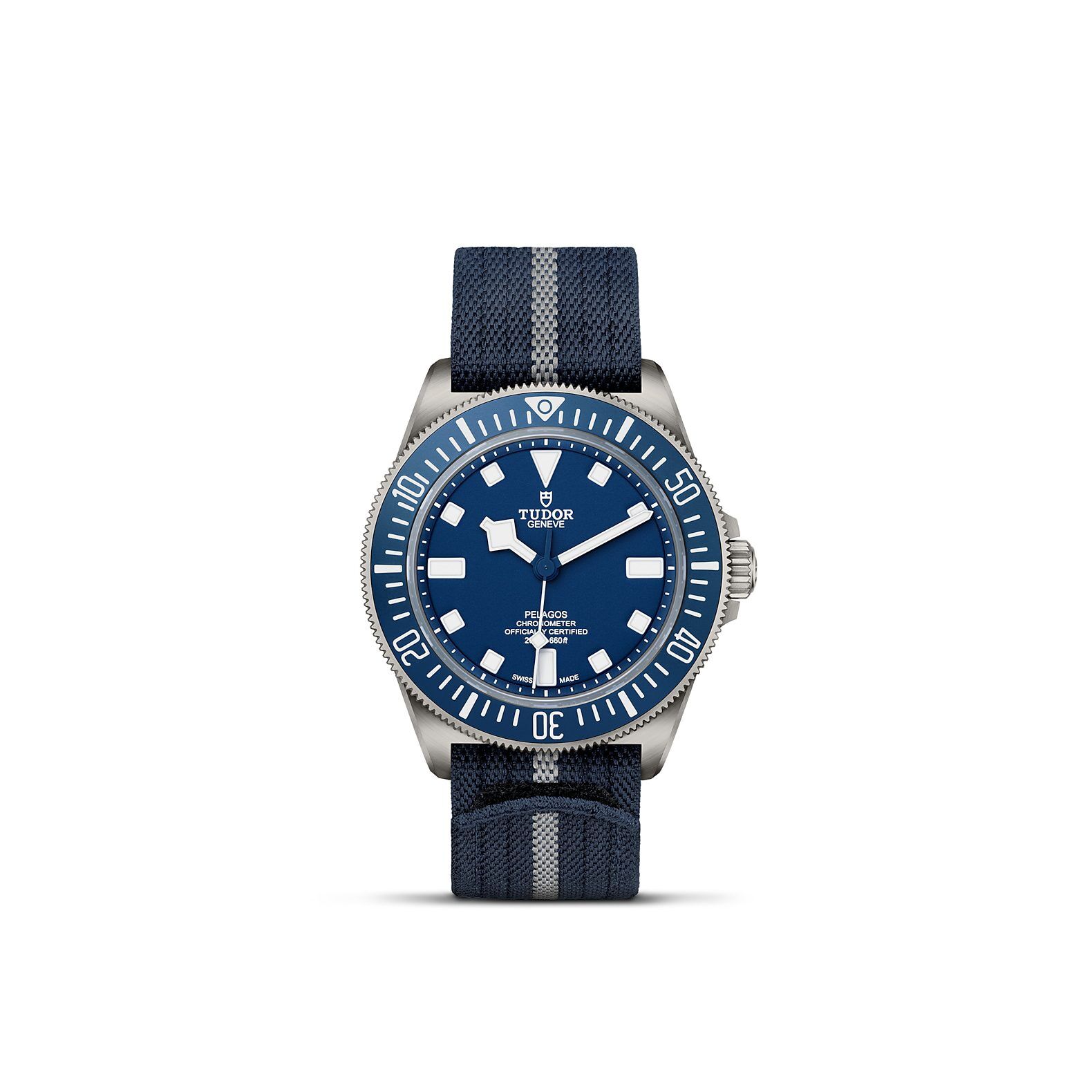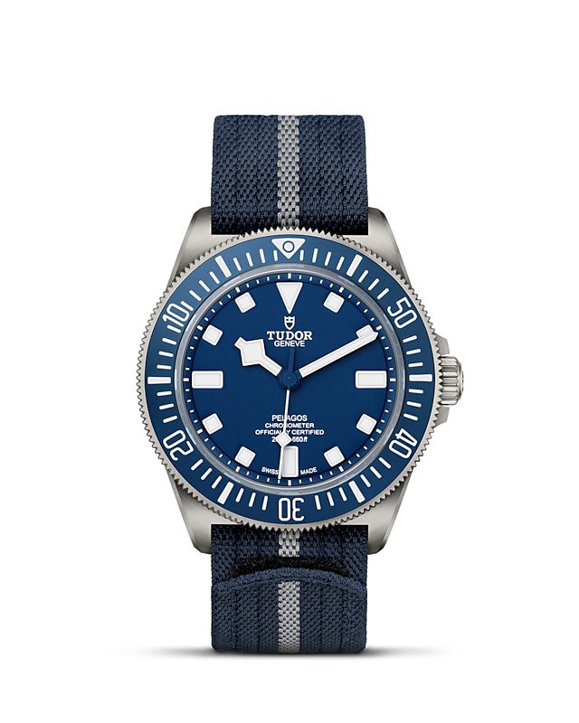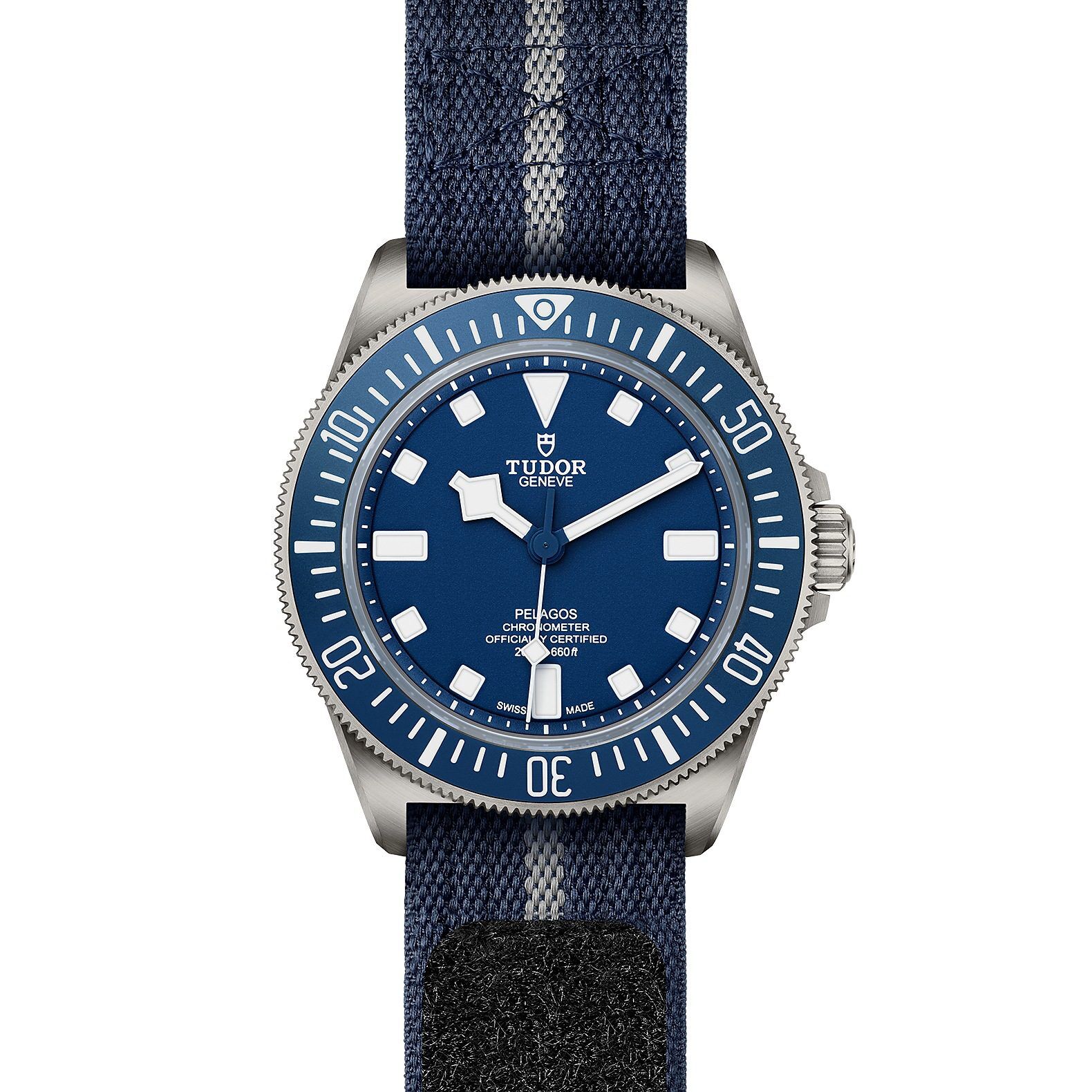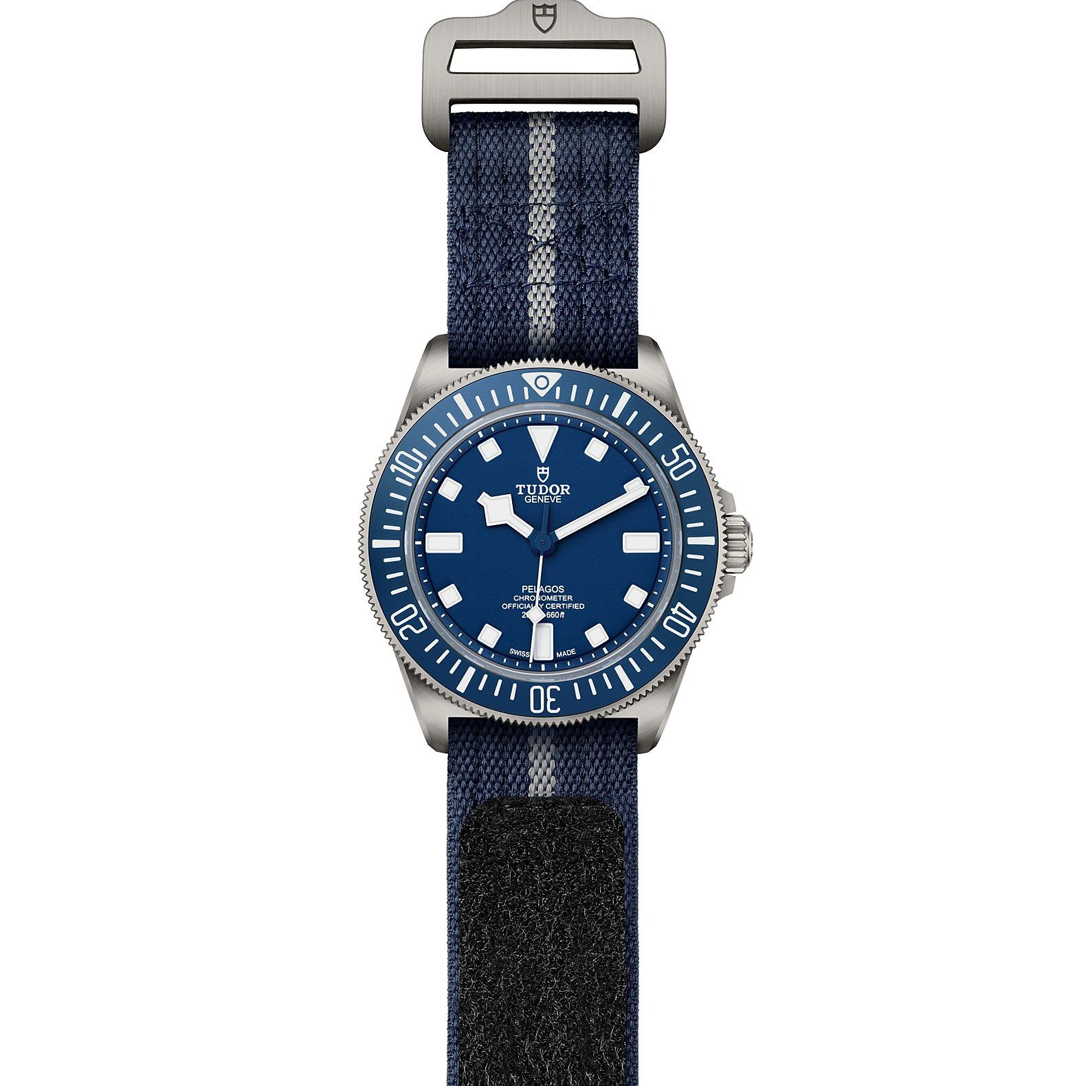 Bezel: Bidirectional rotating bezel in titanium with ceramic disc, 60-minute retrograde graduation for navigation by successive stages, Bracelet: Fabric strap with self-gripping fastening system, navy blue with grey central thread, Dial: Navy blue, Manufacture Calibre MT5602 (COSC), Winding Crown: Titanium crown, adorned with the TUDOR shield in relief-